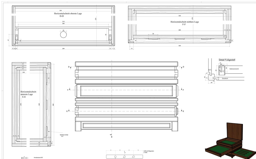 - Vorschläge für Aufteilung, Türen, Schubladen, Innenleben